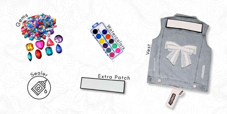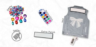 Use paint, markers, patches, gems, stickers, studs.